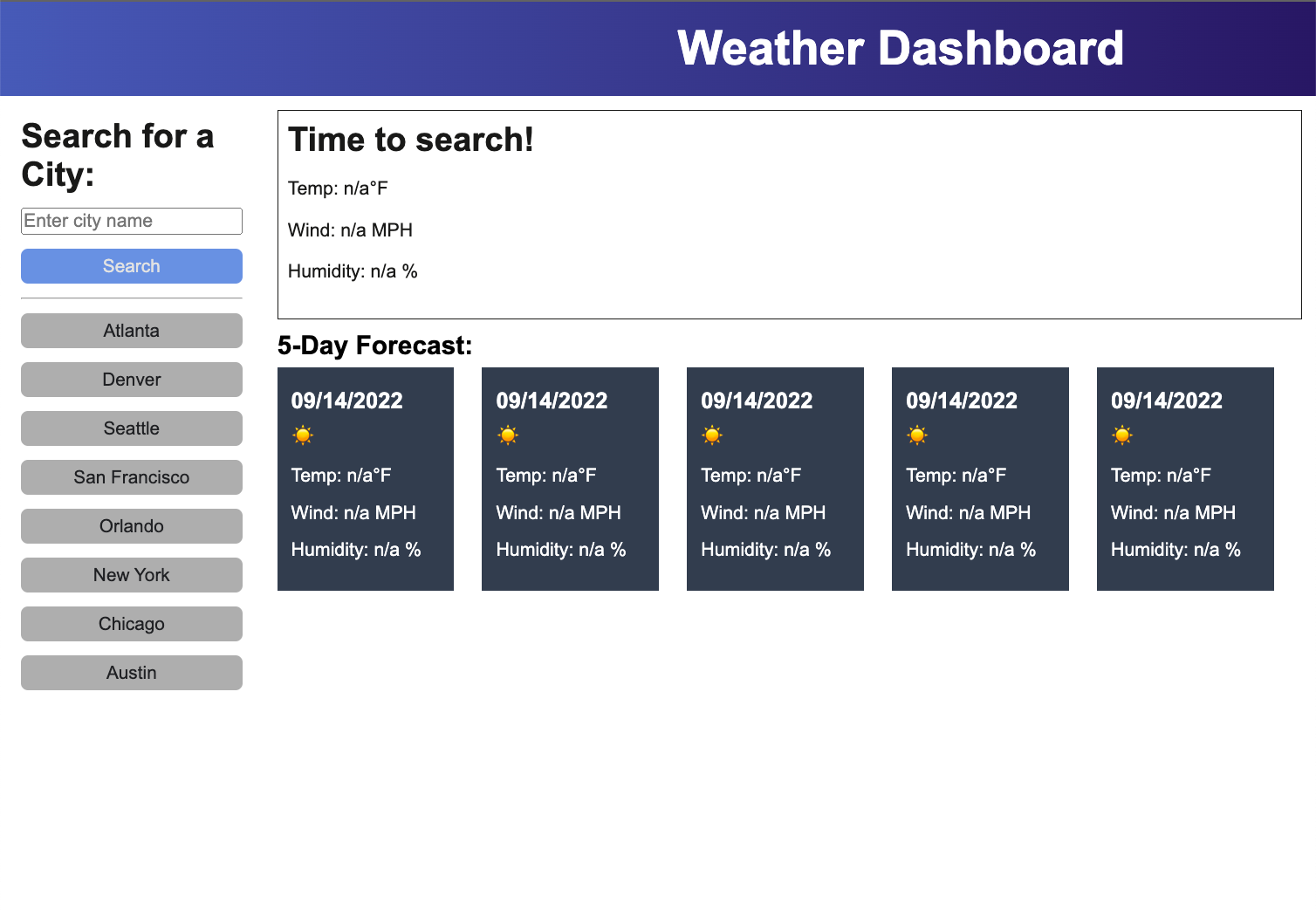 This is a weather dashboard that uses an API from https://openweathermap.org